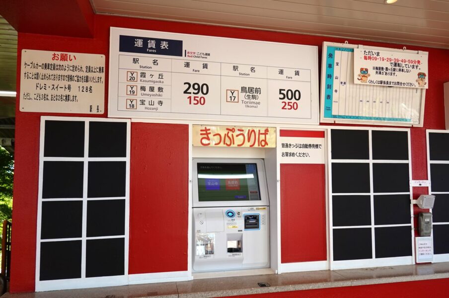山上駅にある券売機は1台のみ。生駒ケーブルカーでは交通系ICカードの利用は不可なのでもう少しあるかと思いましたが、まさかの最小台数。